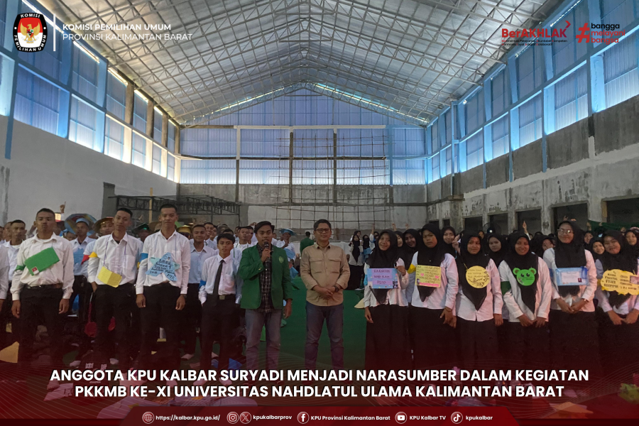 Mengusung tema “Membangun Karakter Mahasiswa Unggul di Tengah Dinamika Perkembangan Zaman”, kegiatan ini berlangsung di Gedung Olahraga Universitas Nahdlatul Ulama Kalimantan Barat. Melalui forum ini, KPU Kalbar terus mendorong generasi muda, khususnya mahasiswa, untuk memperkuat karakter, berintegritas, dan berperan aktif dalam pembangunan demokrasi di Indonesia. (adm)