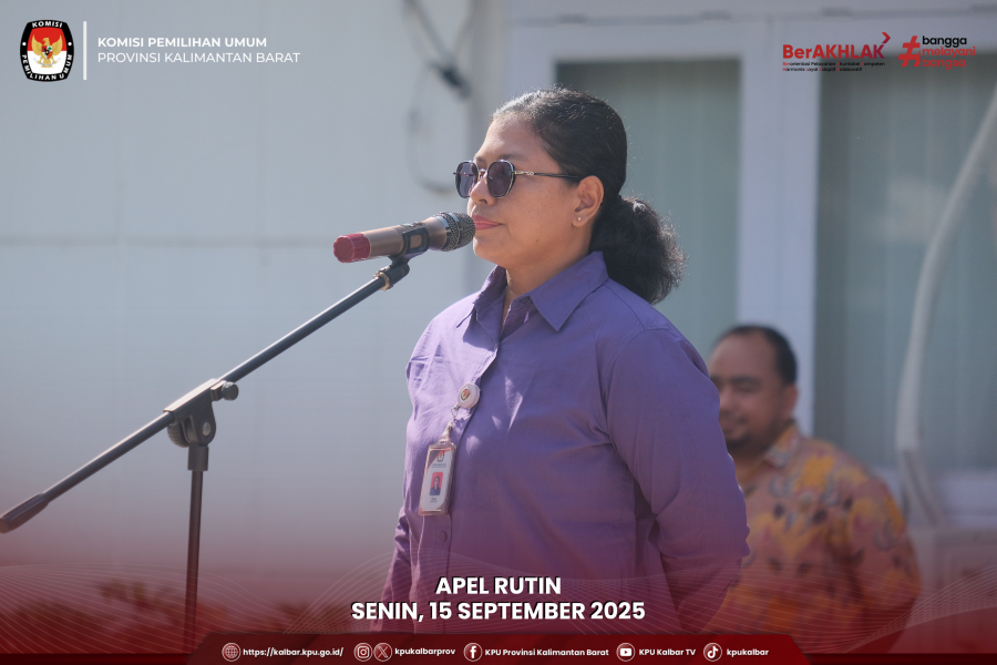 kalbar.kpu.go.id - Pontianak, KPU Kalbar melaksanakan apel rutin pada Senin (15/9). Bertindak sebagai pembina apel, Sekretaris KPU Kalbar Krisnawaty Kristina Banjarnahor.