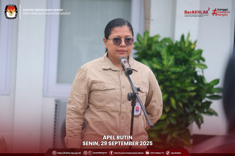 kalbar.kpu.go.id - Pontianak, KPU Kalbar melaksanakan apel rutin pada Senin (29/9). Bertindak sebagai pembina apel, Sekretaris KPU Kalbar Krisnawaty Kristina Banjarnahor.