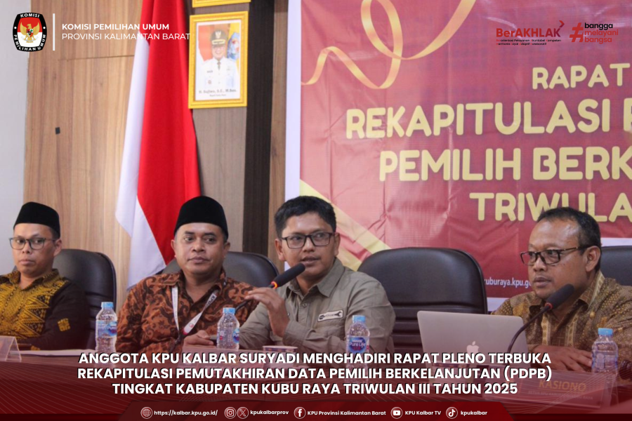 kalbar.kpu.go.id - Pontianak, Anggota KPU Kalbar Suryadi menghadiri Rapat Pleno Terbuka Rekapitulasi Pemutakhiran Data Pemilih Berkelanjutan (PDPB) Tingkat Kabupaten Kubu Raya Triwulan III Tahun 2025.