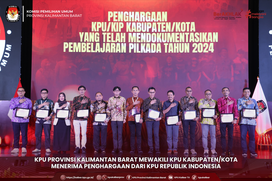 KPU Provinsi Kalimantan Barat mewakili KPU Kabupaten/Kota menerima penghargaan dari KPU Republik Indonesia