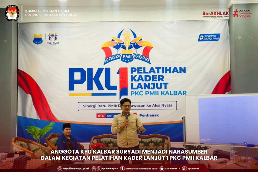 Anggota KPU Kalbar Suryadi menjadi narasumber dalam kegiatan Pelatihan Kader Lanjut (PKL) I PKC PMII Kalimantan Barat