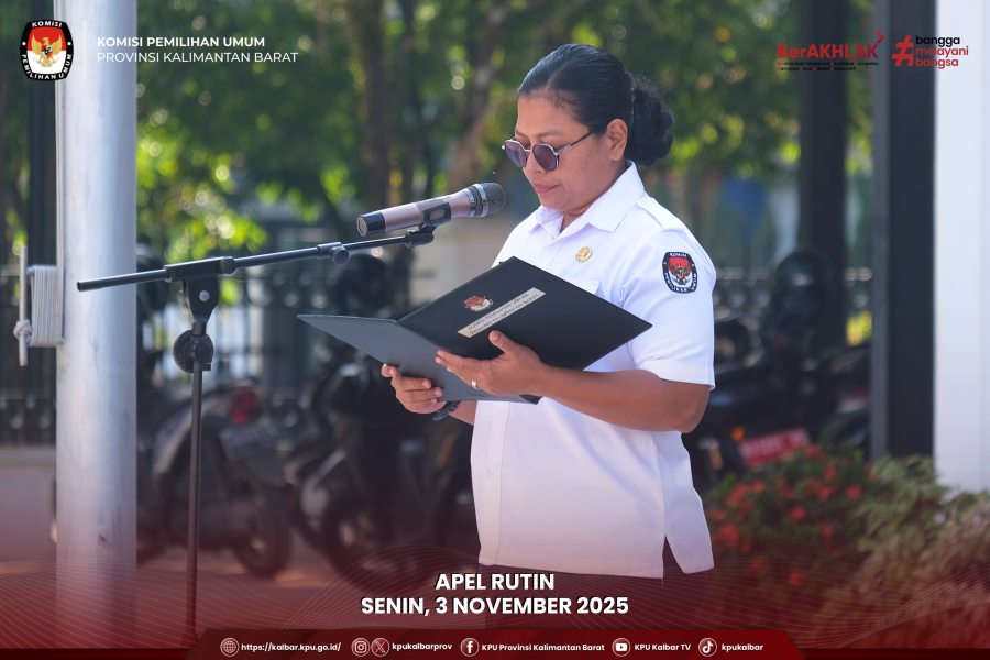 kalbar.kpu.go.id - Pontianak, KPU Provinsi Kalimantan Barat melaksanakan apel rutin pada Senin (3/11). Bertindak sebagai pembina apel, Sekretaris KPU Kalbar Krisnawaty Kristina Banjarnahor.