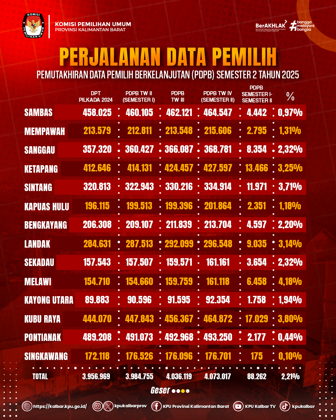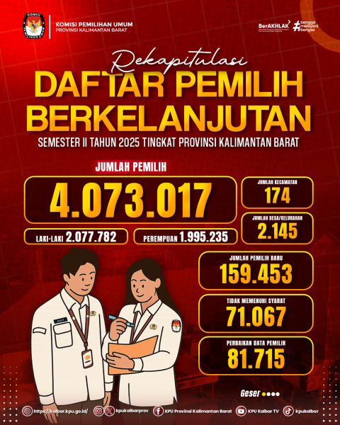 kalbar.kpu.go.id - KPU Provinsi Kalimantan Barat menetapkan hasil Rekapitulasi Pemutakhiran Data Pemilih Berkelanjutan (PDPB) Semester II Tahun 2025 sebagai bagian dari upaya berkelanjutan dalam menjaga akurasi dan kemutakhiran data pemilih.