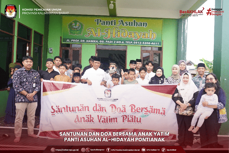 kalbar.kpu.go.id - Pontianak, KPU Provinsi Kalimantan Barat melaksanakan Santunan dan Doa Bersama Anak Yatim Panti Asuhan Al-Hidayah Pontianak, Jum'at (06/02), sebagai wujud rasa syukur dan kepedulian sosial dalam menyambut bulan suci Ramadhan. Kegiatan yang berlangsung dengan khidmat dan sederhana ini diisi dengan doa bersama serta penyerahan santunan kepada anak-anak yatim.