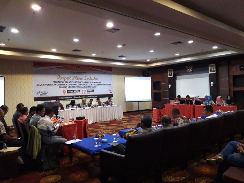 Bertempat di Hotel Aston Pontianak, Sabtu(17/03) KPU Provinsi Kalimantan Barat melaksanakan Rapat Pleno Terbuka Penetapan Rekapitulasi Daftar Pemilih Sementara dalam Pemilihan Gubernur dan Wakil Gubernur Kalimantan Barat Tahun 2018 tingkat Provinsi.