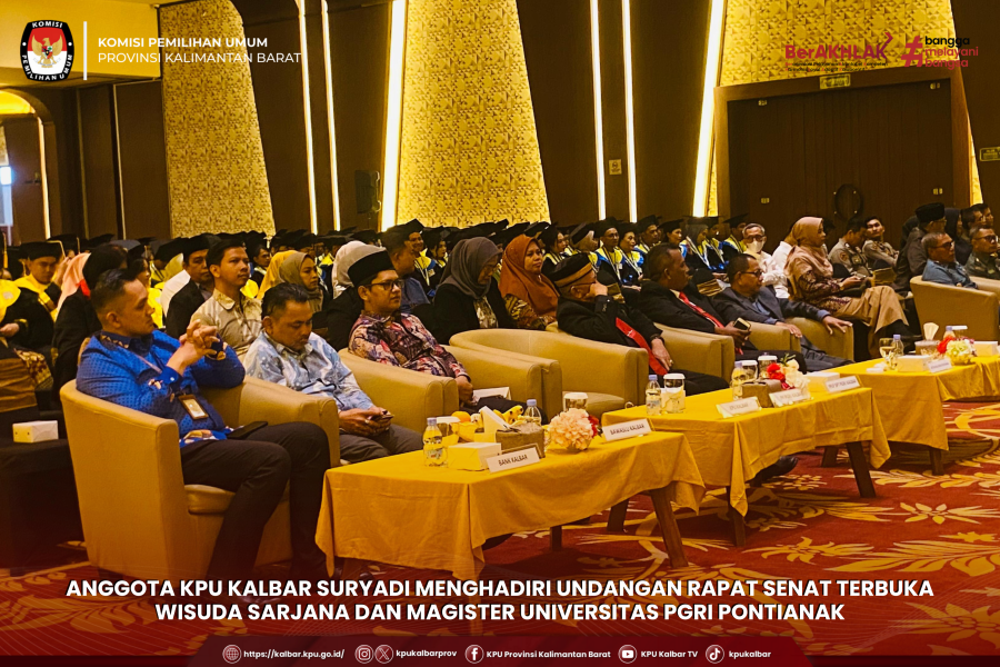 Anggota KPU Kalbar Suryadi menghadiri undangan Rapat Senat Terbuka Wisuda Sarjana dan Magister Universitas PGRI Pontianak sebagai bentuk apresiasi dan dukungan terhadap dunia pendidikan tinggi, bertempat di The Q Hall Convention Centre, Kamis (3/7).