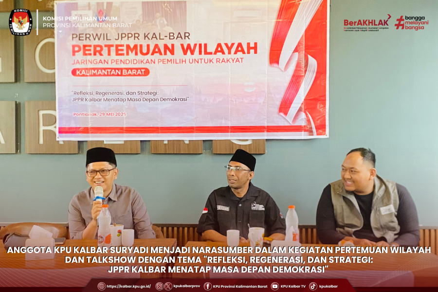 Anggota KPU Kalbar Suryadi menjadi narasumber dalam kegiatan Pertemuan Wilayah (PERWIL) dan Talkshow dengan Tema Refleksi, Regenerasi, dan Strategi: JPPR Kalbar Menatap Masa Depan