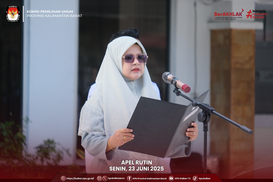 kalbar.kpu.go.id - Pontianak, KPU Kalbar melaksanakan apel rutin pada Senin (16/6), dengan Anggota KPU Kalbar Syarifah Nuraini sebagai pembina apel.