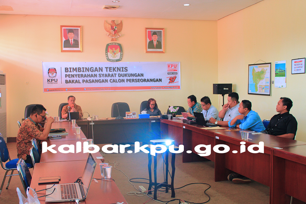 kalbar.kpu.go.id – Komisi Pemilihan Umum (KPU) Provinsi Kalimantan Barat menggelar Bimbingan Teknis (Bimtek) Penyerahan Syarat Dukungan Bakal Pasangan Calon Perseorangan pada Pemilihan Gubernur dan Wakil Gubernur Kalimantan Barat Tahun 2018, Senin(06/11) bertempat di Aula Lt.2 KPU Provinsi Kalimantan Barat.