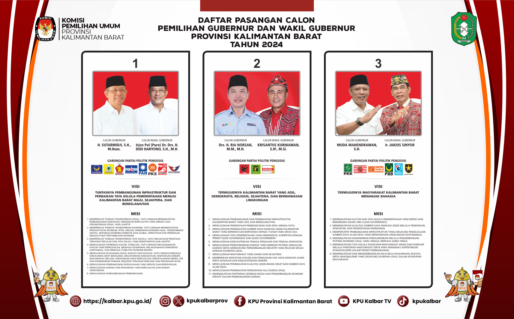 Daftar Pasangan Calon Gubernur dan Wakil Gubernur Provinsi Kalimantan Barat Tahun 2024
