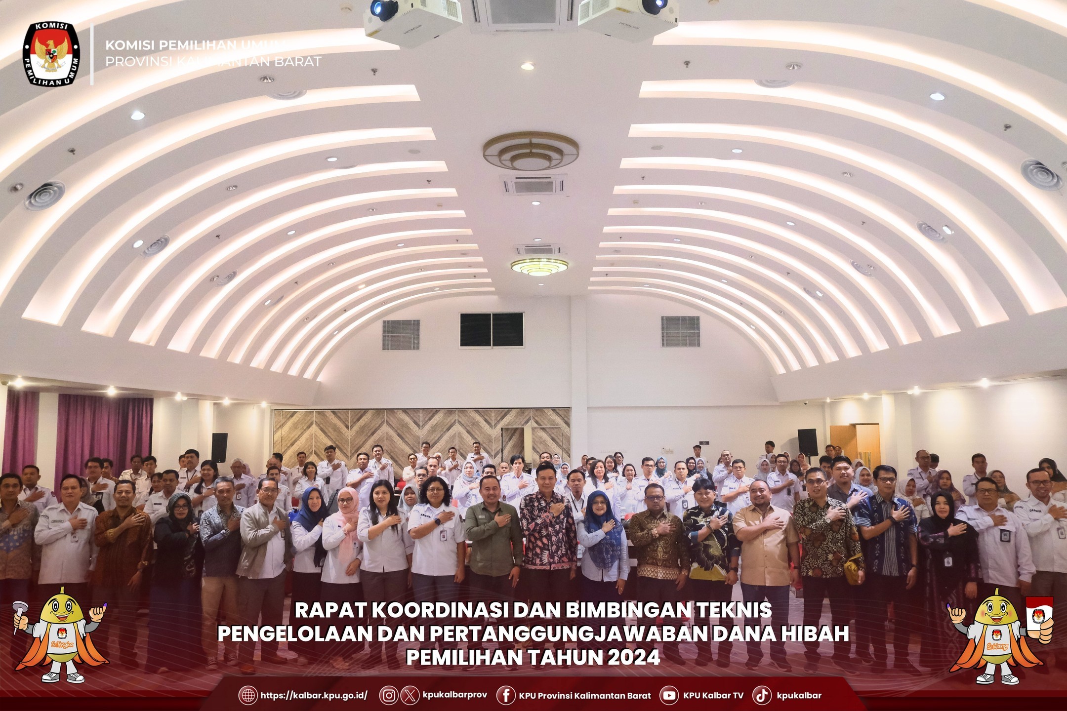 kalbar.kpu.go.id - Pontianak, KPU Kalbar melaksanakan Rapat Koordinasi dan Bimbingan Teknis Pengelolaan dan Pertanggungjawaban Dana Hibah Pemilihan Tahun 2024, di Hotel Mercure Pontianak, Senin - Rabu (15-17/7).