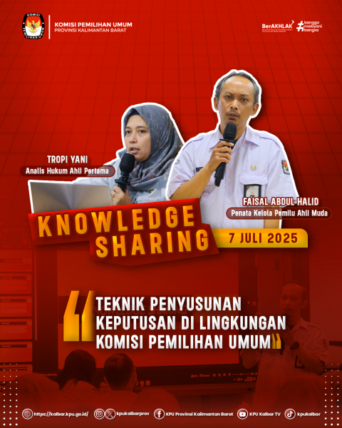 dalam upaya terus meningkatkan kapasitas sumber daya manusia, KPU Provinsi Kalimantan Barat menggelar kegiatan Berbagi Pengetahuan (Knowledge Sharing) yang berlangsung di Aula KPU Kalbar pada Senin (7/7).