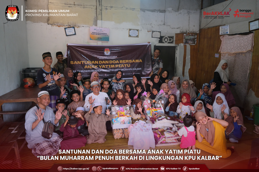 KPU Provinsi Kalimantan Barat melaksanakan kegiatan Santunan dan Doa Bersama Anak Yatim Piatu dengan tema "Bulan Muharram Penuh Berkah di Lingkungan KPU Kalbar" yang berlangsung di Panti Asuhan Al-Aliyah Assyafi'iyah pada Jumat, 25 Juli 2025.
