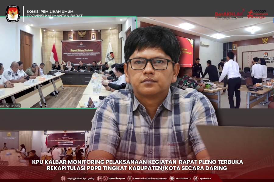 KPU Provinsi Kalimantan Barat melakukan monitoring terhadap pelaksanaan kegiatan Rapat Pleno Terbuka Rekapitulasi Pemutakhiran Data Pemilih Berkelanjutan (PDPB) Tingkat Kabupaten/Kota secara daring di 14 KPU Kabupaten/Kota se-Kalimantan Barat.