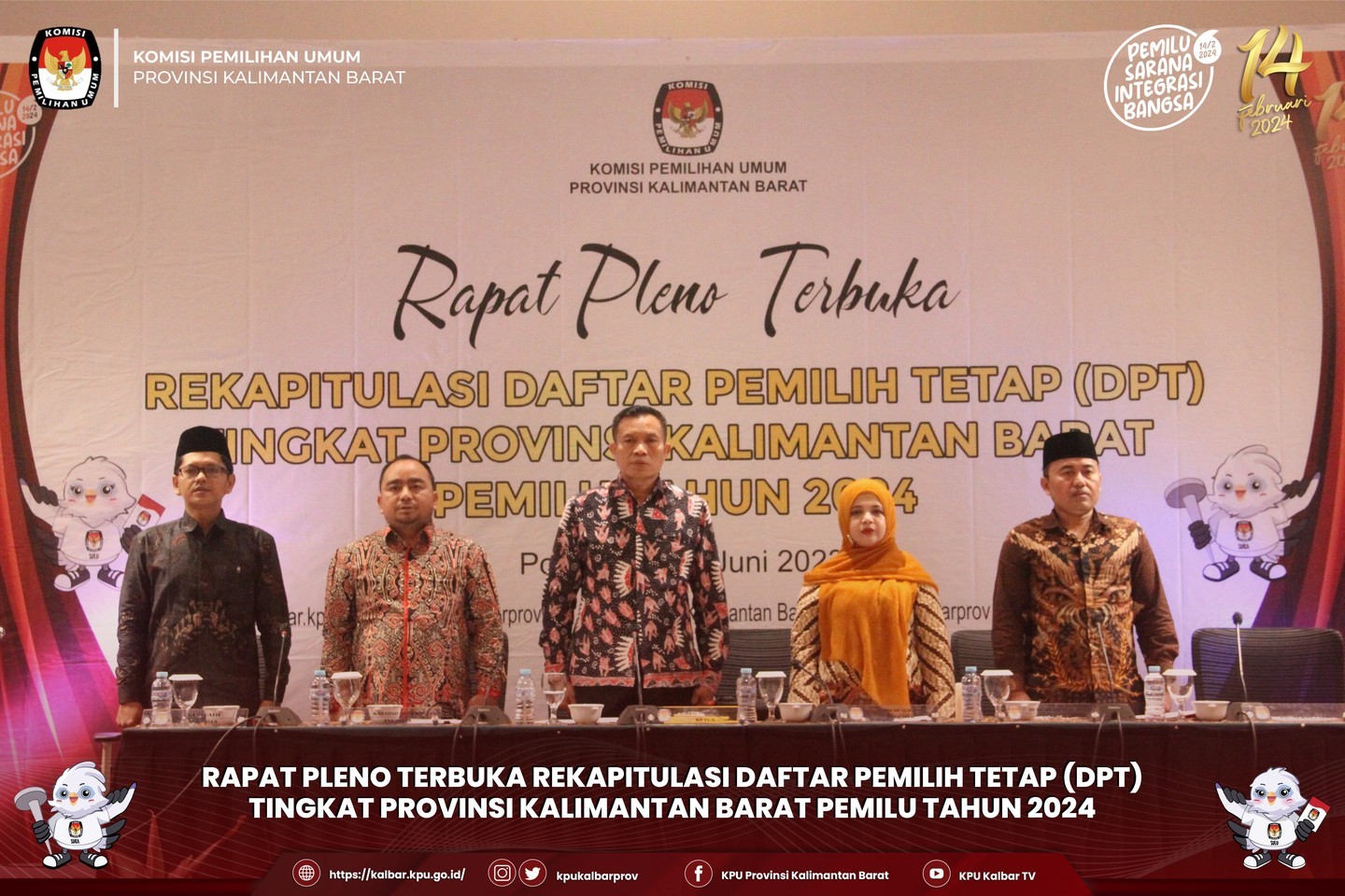 kalbar.kpu.go.id - Pontianak, Bertempat di Hotel Mercure Pontianak, KPU Provinsi Kalimantan Barat gelar Rapat Pleno Terbuka Rekapitulasi Daftar Pemilih Tetap (DPT) Tingkat Provinsi Kalimantan Barat untuk Pemilih Serentak Tahun 2024, Selasa(27/6).