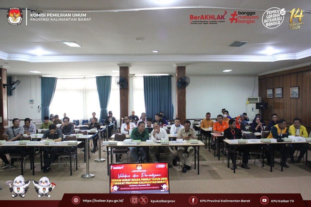 kalbar.kpu.go.id - Pontianak, Menjelang Penetapan Daftar Calon Tetap (DCT) Anggota Dewan Perwakilan Rakyat Daerah (DPRD) Provinsi Kalimantan Barat dan Anggota Dewan Perwakilan Daerah (DPD) Daerah Pemilihan Kalimantan Barat, Komisi Pemilihan Umum Provinsi Kalimantan Barat gelar Validasi Surat Suara bertempat di Aula KPU Kalimantan Barat, Kamis(2/11).