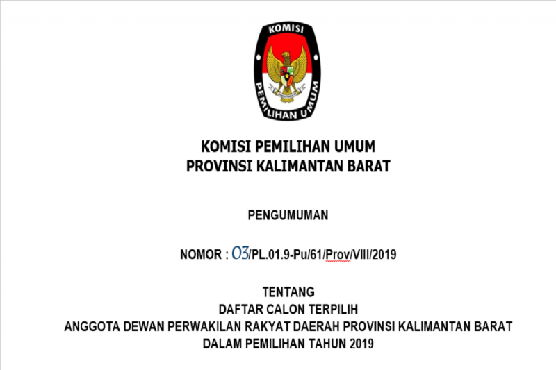 Pengumuman Daftar Calon Terpilih DPRD Kalbar 2019