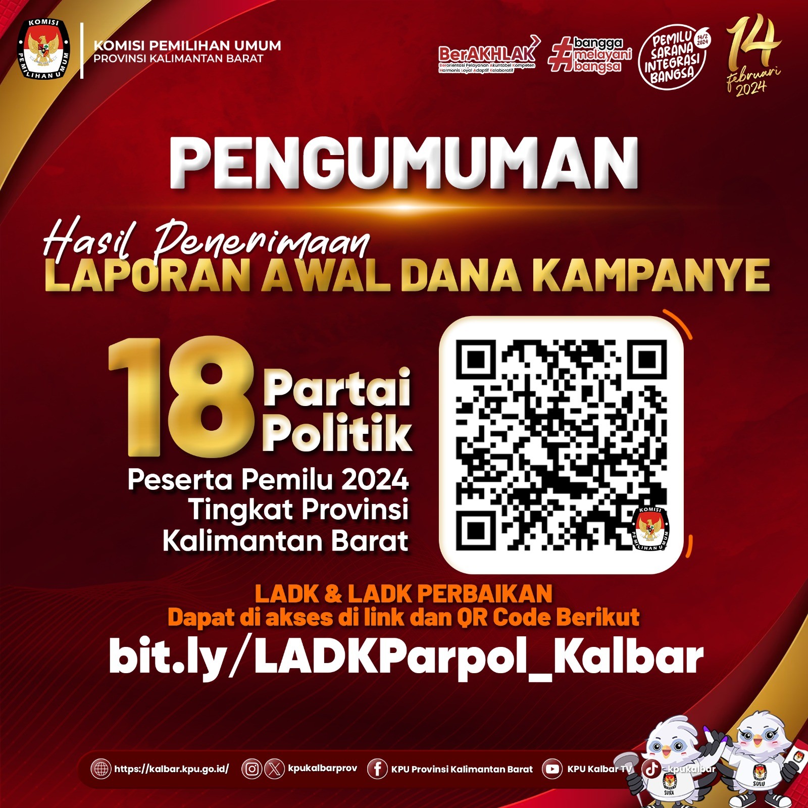 kalbar.kpu.go.id - Berikut disampaikan Pengumuman Pengumuman Hasil Penerimaan LADK Parpol Tahun 2024.