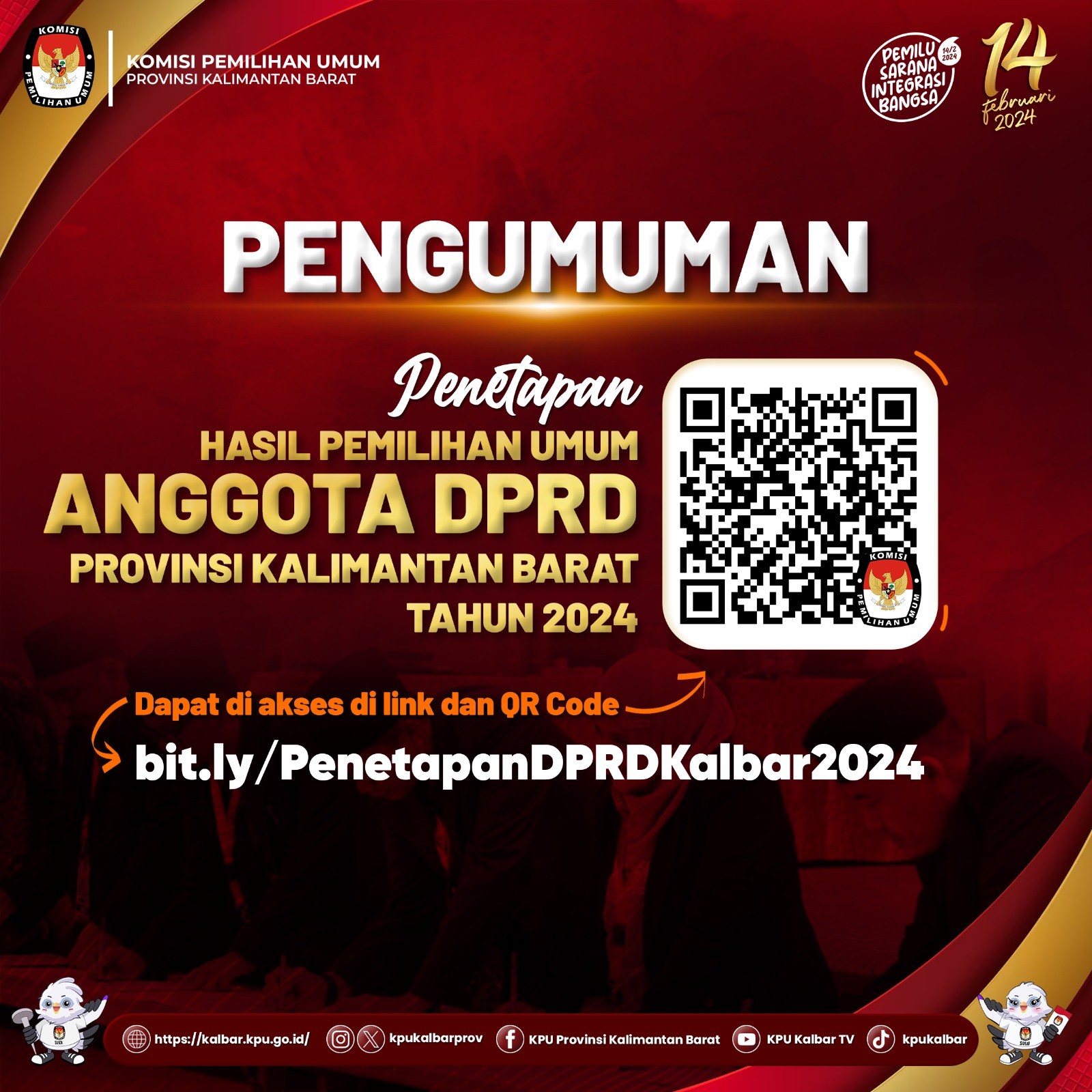 kalbar.kpu.go.id - Berikut disampaikan Pengumuman Hasil Pemilihan Umum Anggota DPRD Provinsi Kalimantan Barat Pemilu Tahun 2024.
