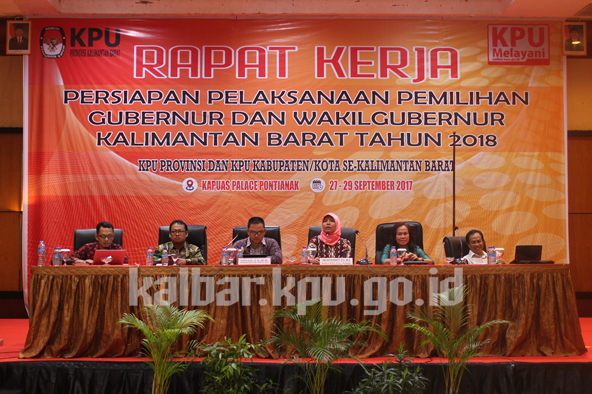 kalbar.kpu.go.id – Komisi Pemilihan Umum (KPU) Provinsi Kalimantan Barat menggelar Rapat Kerja Persiapan Pemilihan Gubernur dan Wakil Gubernur Kalimantan Barat Tahun 2018, Rabu(27/06) bertempat di Hotel Kapuas Palace Pontianak.
