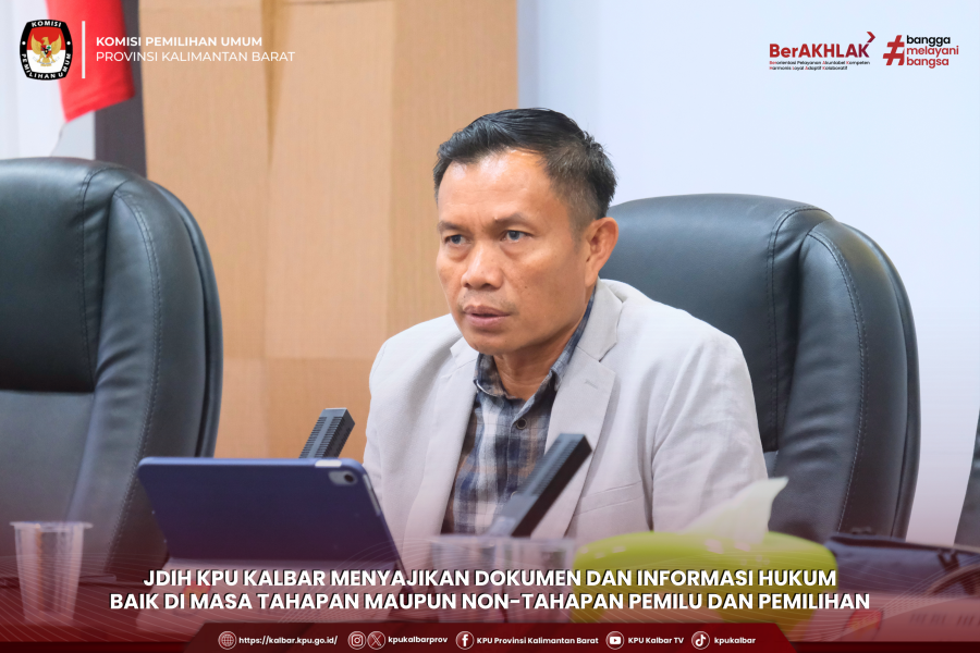 Hal tersebut disampaikan oleh Ketua KPU Kalbar Muhammad Syarifuddin Budi saat membuka sekaligus memberikan sambutan dalam kegiatan Rapat Koordinasi Evaluasi Jaringan Dokumentasi dan Informasi Hukum Semester I Tingkat KPU Kabupaten/Kota se-Kalimantan Barat bertempat di Aula KPU Kalbar, secara daring, Kamis (3/7).