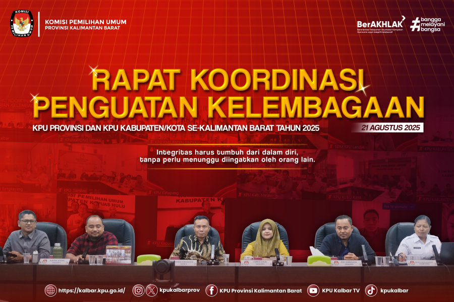 hal tersebut disampaikan saat beliau membuka Rapat Koordinasi Penguatan Kelembagaan yang dilaksanakan secara daring pada Kamis (21/8). Kegiatan ini turut dihadiri oleh Anggota KPU Kalbar Syarifah Nuraini, Heru Hermansyah, Suryadi, Kartono Nuryadi, serta Sekretaris KPU Kalbar, Krisnawaty Kristina Banjarnahor.