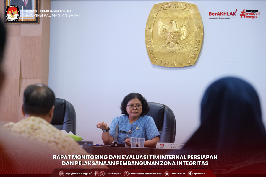 kalbar.kpu.go.id - Pontianak, KPU Kalbar melaksanakan Rapat Monitoring dan Evaluasi Tim Internal Persiapan dan Pelaksanaan Pembangunan Zona Integritas, bertempat di Aula KPU Kalbar, Jum'at (9/5). Rapat dipimpin oleh Sekretaris KPU Kalbar Krisnawaty Kristina Banjarnahor dan dihadiri oleh Kepala Bagian serta Kepala Sub Bagian Sekretariat KPU Provinsi Kalimantan Barat.