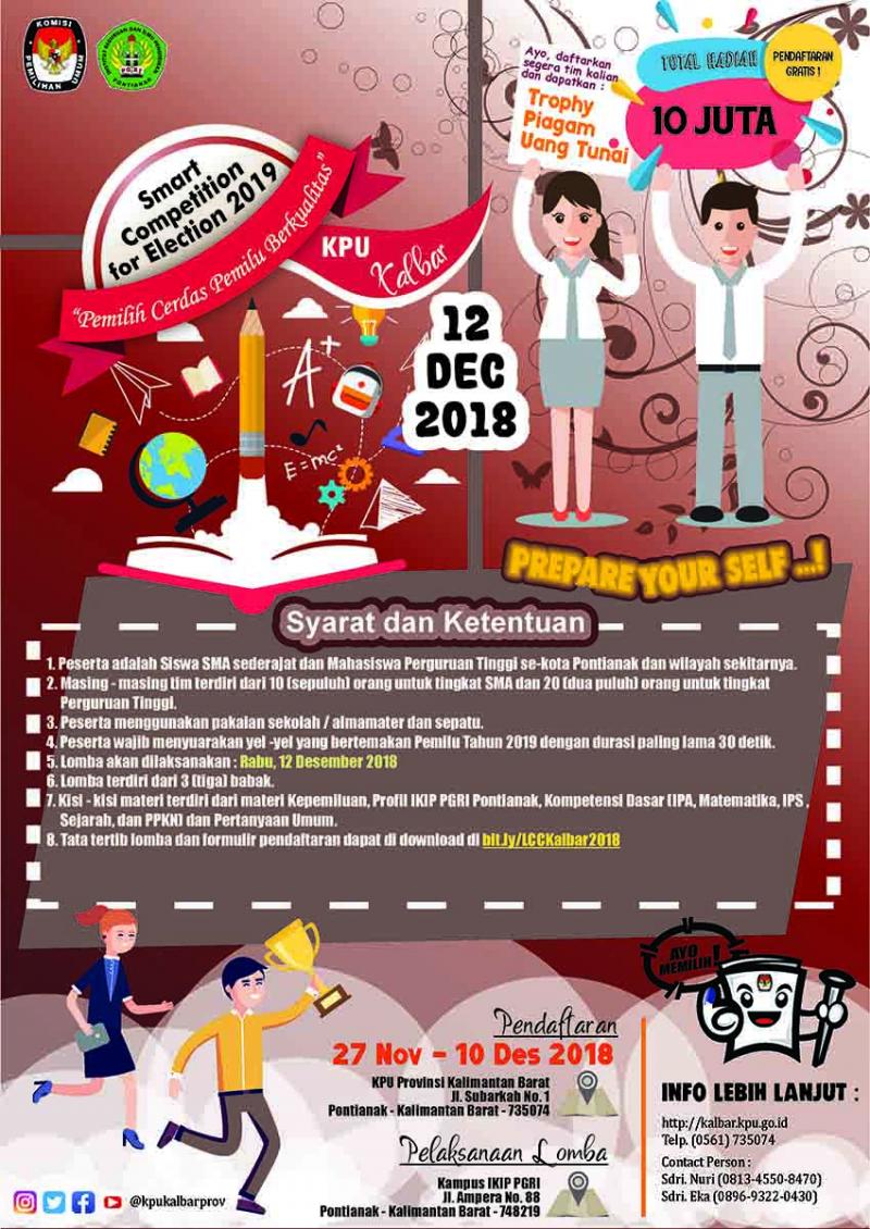 Saksikan dan Meriahkan Smart Competition for Election 2019 bertajuk Pemilih Cerdas Pemilu Berkualitas.