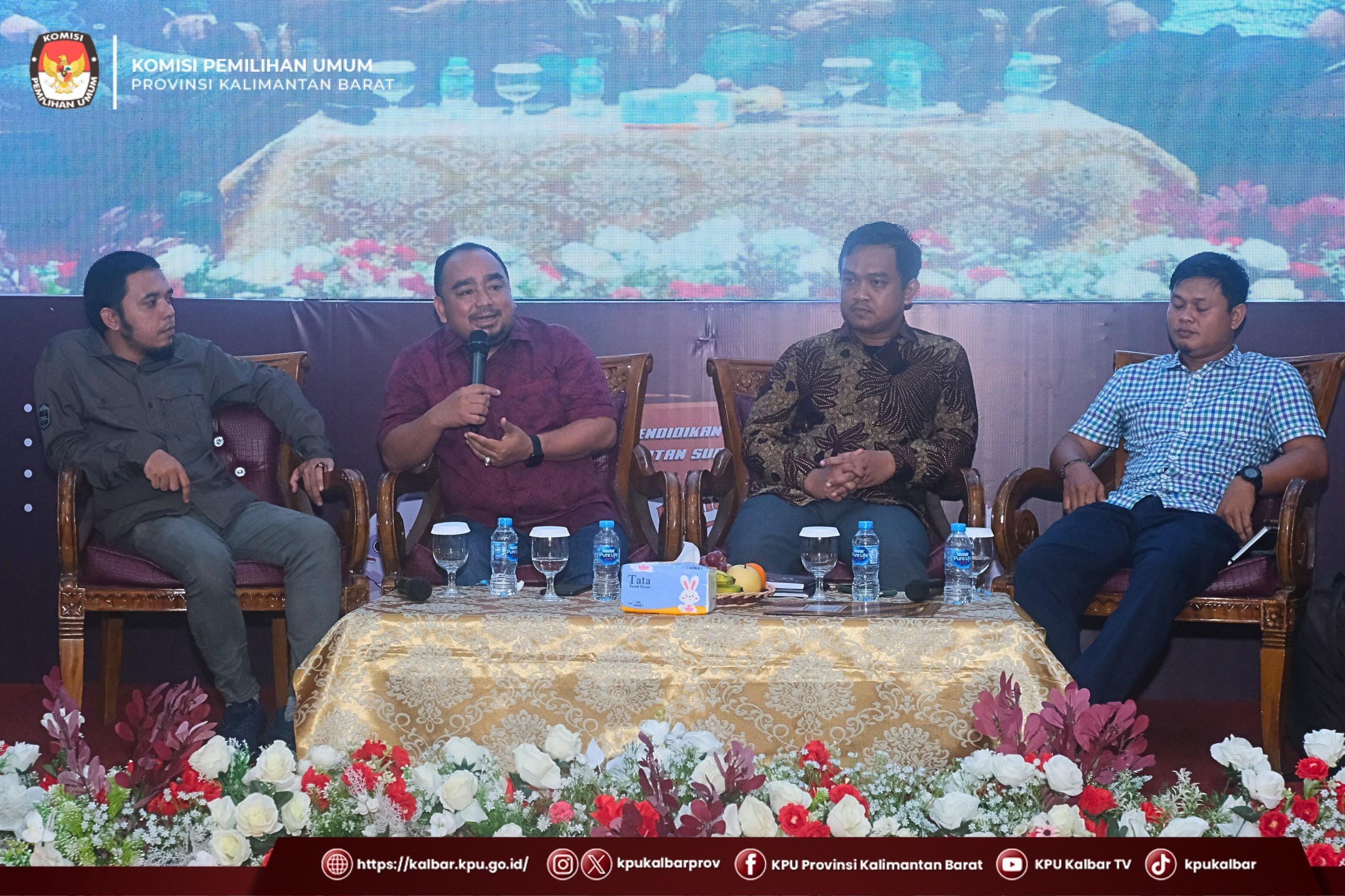 Narasumber dalam kegiatan ini Anggota KPU Kalbar Kartono Nuryadi, Ketua Umum NETFID Indonesia M. Afit Khomsani, dan Ketua PH Aliansi Masyarakat Adat Nusantara Wilayah Kalimantan Barat Tono.